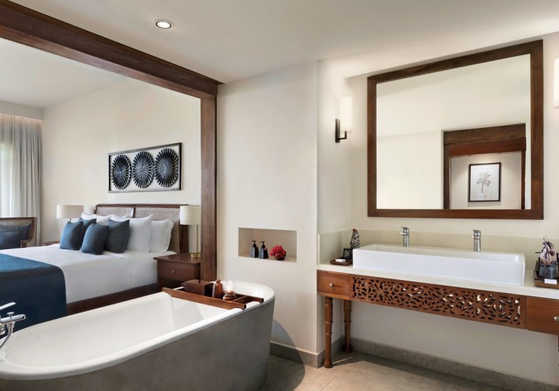 Mehr Privatsphäre bieten die Villen mit rund 84 Quadratmetern, privatem Pool, freistehender Badewanne sowie Ankleide- und Sitzecke. Je nach Kategorie stehen Ausblicke wie Garten-, Pool-, Strand- oder Meerblick zur Verfügung. Familien freuen sich über passende Einheiten und Optionen wie Zustell- oder Kinderbett, sodass Ihr Eure Tage am Strand entspannt strukturiert.