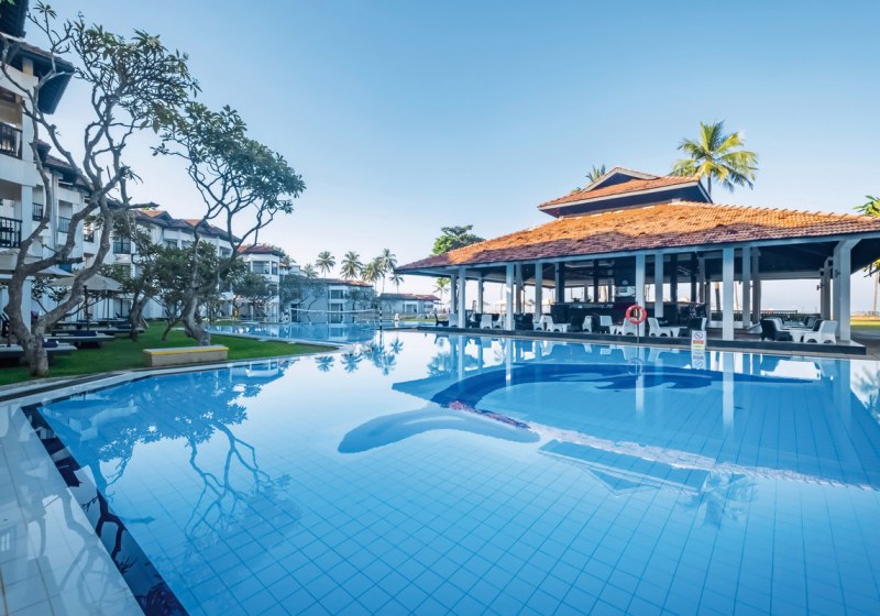 Die Lage punktet mit kurzer Distanz und klarer Orientierung: direkt am Sandstrand nahe Waikkal, etwa 20 Fahrminuten bis Negombo und rund 21 Kilometer zum Flughafen Colombo. So erreicht Ihr nach Ankunft zügig das Resort und startet ohne Umwege in entspannte Strandtage. Die unmittelbare Strandlinie gibt Euren Tagesrhythmus vor, von morgendlichen Spaziergängen bis zum Sonnenuntergang.