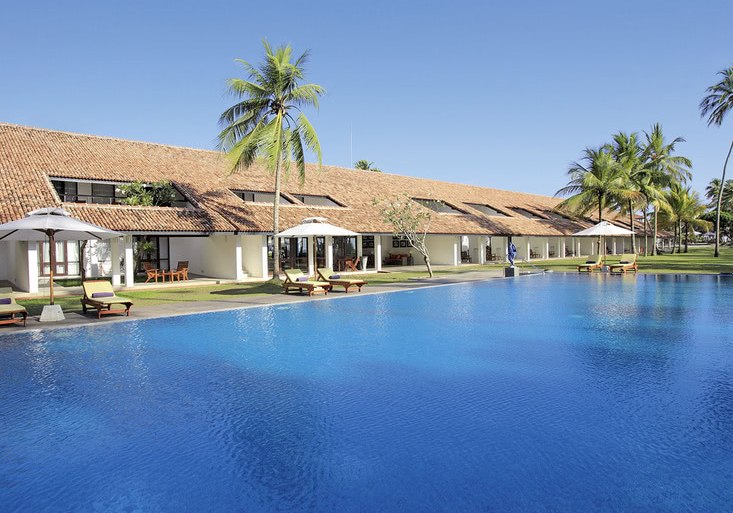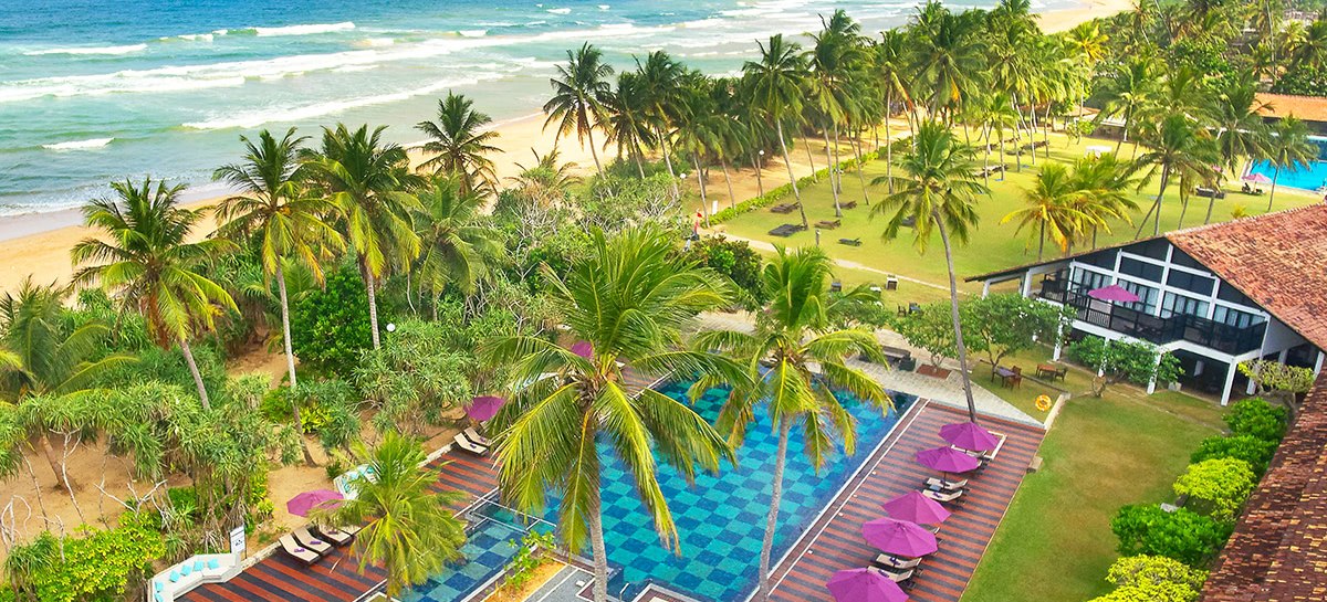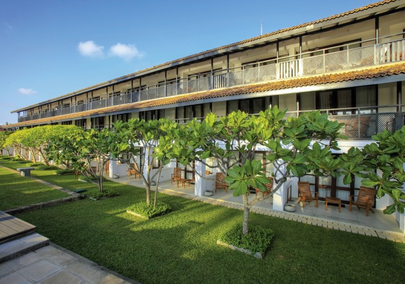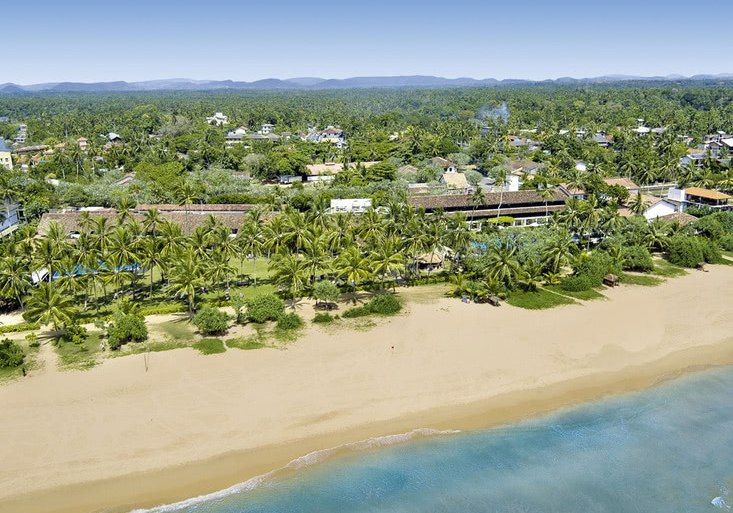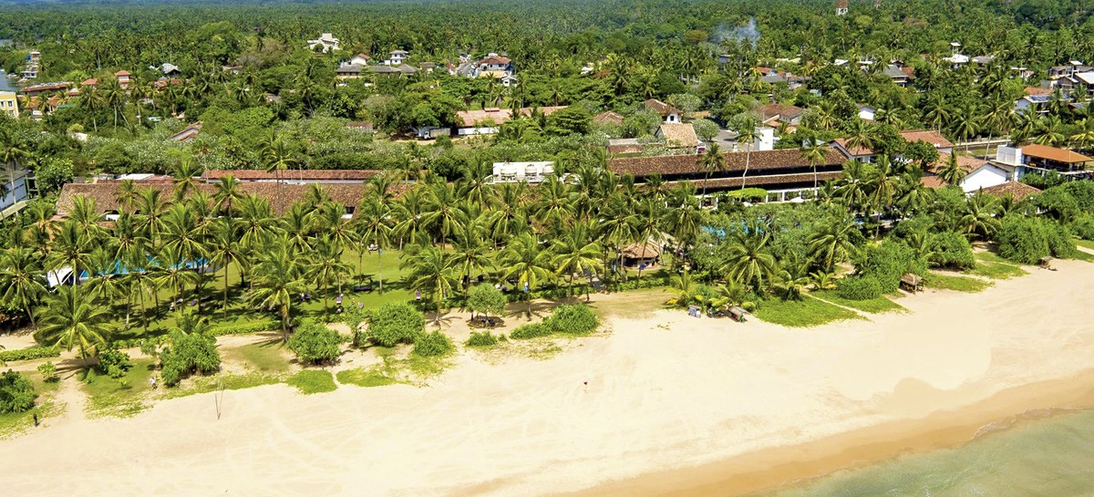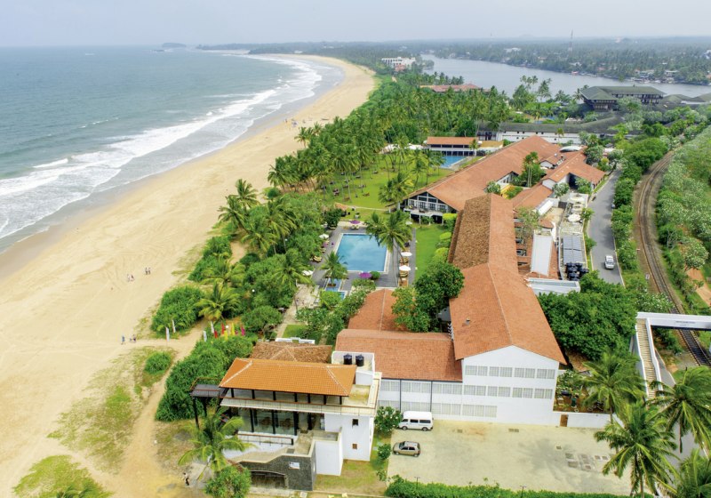 Das Resort liegt direkt am Strand von Bentota; Ihr erreicht Aluthgama zu Fuß. Hinter dem Hotel verläuft die Bahnlinie mit Bahnhof, was Eure An- und Abreise sowie Ausflüge erleichtert. Der internationale Flughafen Colombo ist etwa 100 Kilometer entfernt; die Transferzeit beträgt rund dreieinhalb Stunden.