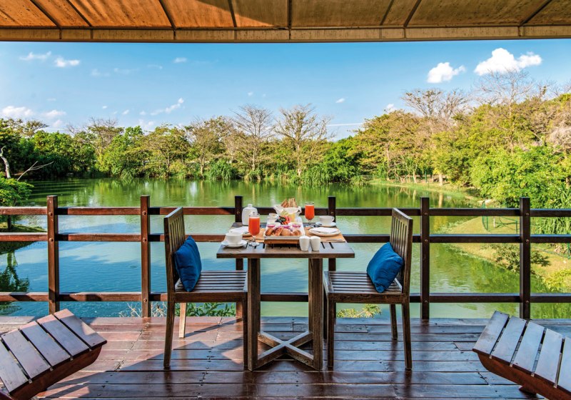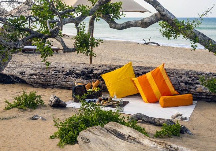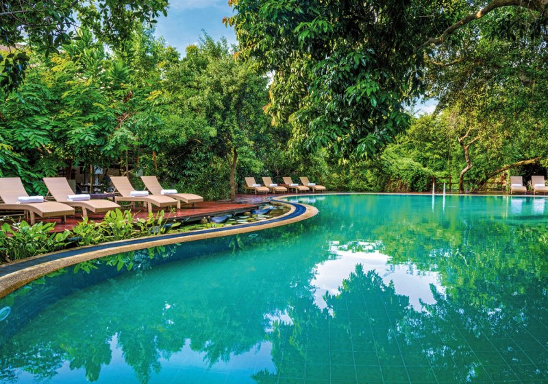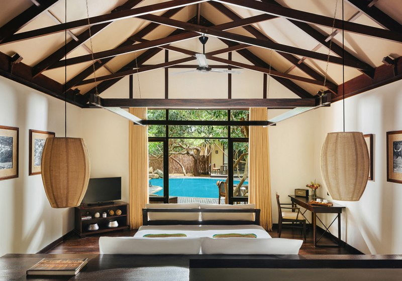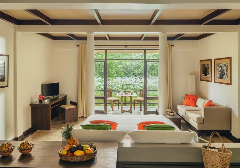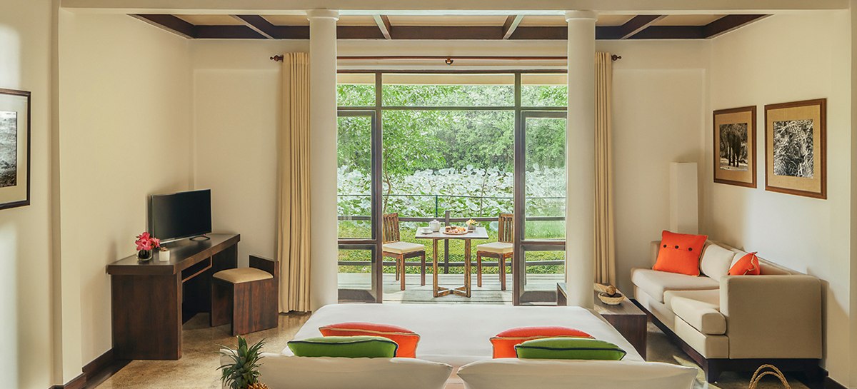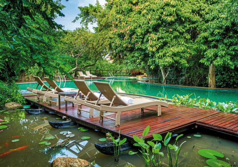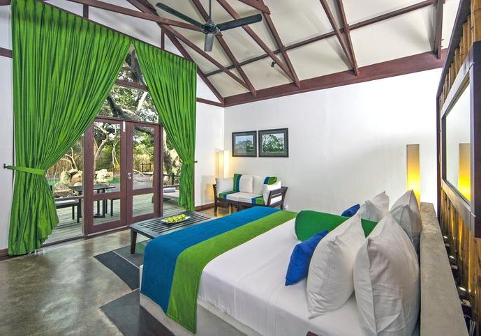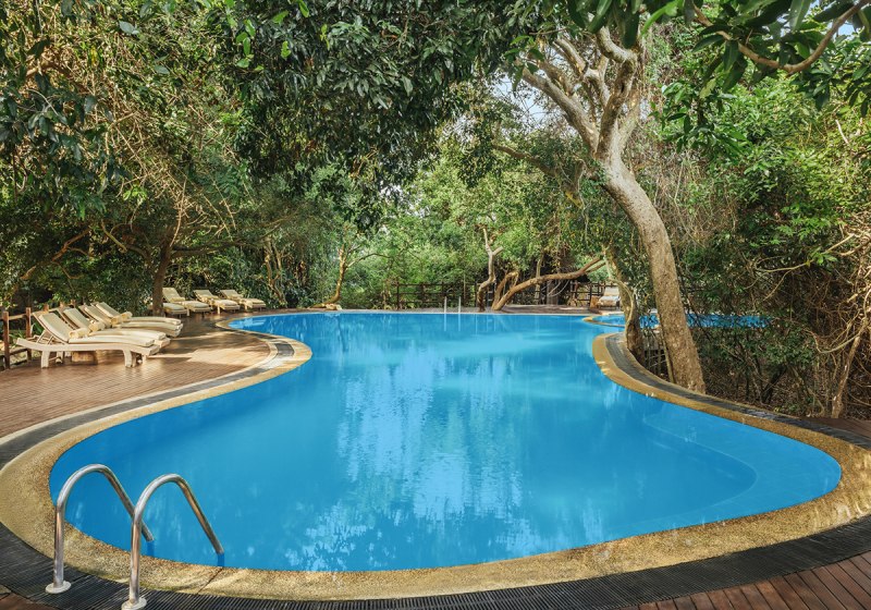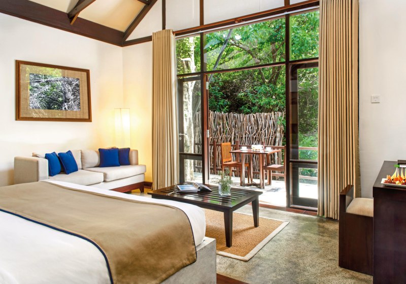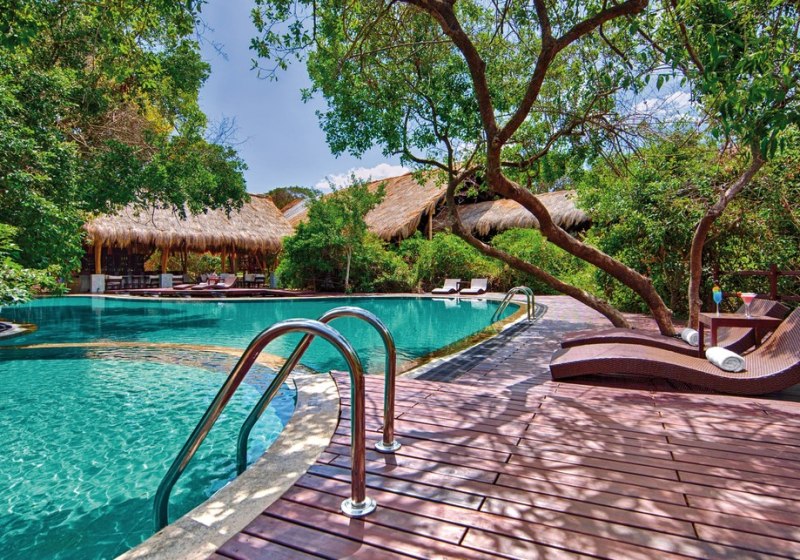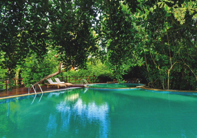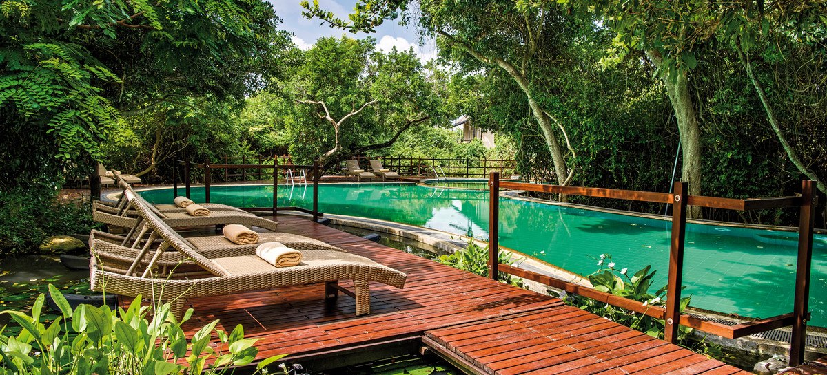Zwischen Dschungelgrün und einem 4 km langen Naturstrand öffnet Uga Jungle Beach seine offene Lobby zur Brise des Indischen Ozeans. Mit nur 48 Zimmern bleibt die Atmosphäre überschaubar und entspannt. Ihr spaziert durch eine gepflegte Gartenanlage zum Swimmingpool mit Sonnenterrasse und nehmt auf Liegen unter Schirmen Platz, während WLAN in der gesamten Anlage zuverlässig verbunden hält.