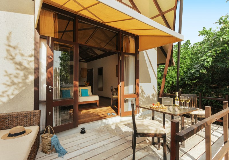 Die Zimmer setzen auf klare Ausstattung: Klimaanlage, Regendusche mit WC, Föhn, Telefon, LCD-TV, iPod-Dockingstation, Safe sowie Minibar gegen Gebühr. Ein Kaffee- und Teezubereiter gehört ebenso dazu. Draußen wartet ein Balkon oder eine Terrasse mit Blick in den Garten oder zur Lagune, je nach Lage.