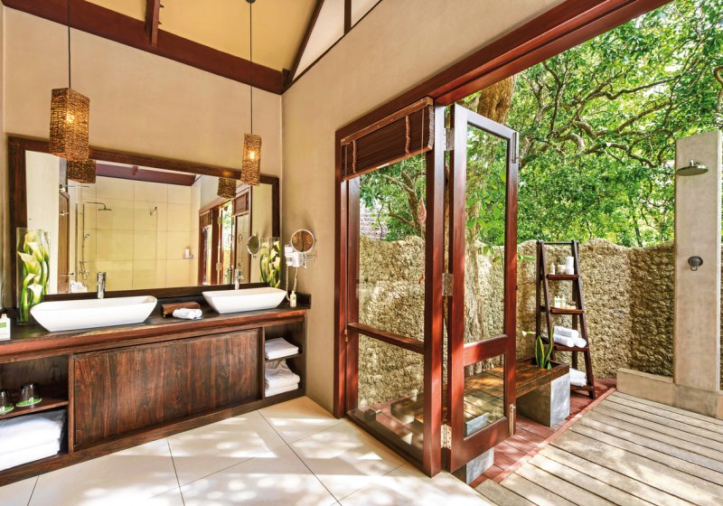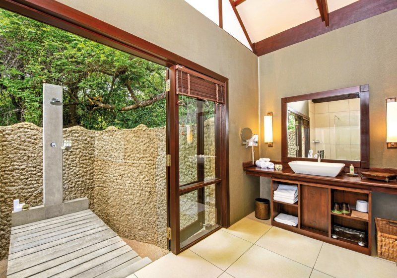 Die Jungle Cabins stehen freistehend, erhalten durch eine zusätzliche Außendusche und eine private Terrasse mit Dschungelblick ihr Profil. Die Beach Cabins liegen näher am Strand und führen über einen Privatweg direkt dorthin. So wählt Ihr zwischen grünem Rückzug und Strandnähe. Highlight: Freistehende Cabins mit klaren Unterschieden zwischen Dschungelruhe und Küstenzugang.