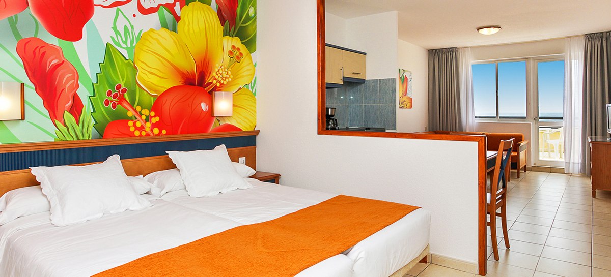 Apartamentos Palm Garden by LIVVO kombiniert Strandnähe, Meerseiten-Lage aller Wohneinheiten und eine klare, zweckmäßige Infrastruktur. Ihr mischt Buffetkomfort mit Selbstversorger-Freiheit, bleibt dank Shopping Center nebenan flexibel und erreicht Meer und Aktivitäten in wenigen Minuten.