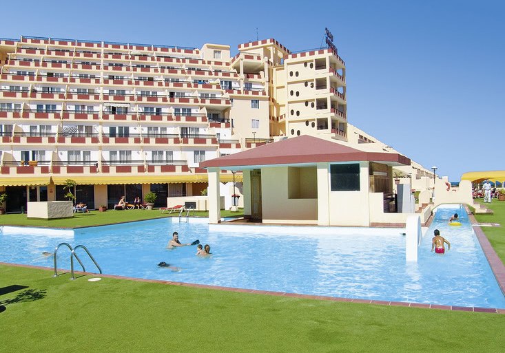 Die Anlage umfasst 295 Appartements in einem zehngeschossigen Haupthaus. Mittelpunkt ist der Außenbereich mit Pool, separatem Kinderbecken, Sonnenterrasse, Liegen und Schirmen. Dazu kommen Poolbar, Foyer, Dachterrasse und kostenloser WLAN-Bereich. Die Rezeption ist rund um die Uhr besetzt, mehrsprachiges Personal unterstützt Euch bei Fragen.