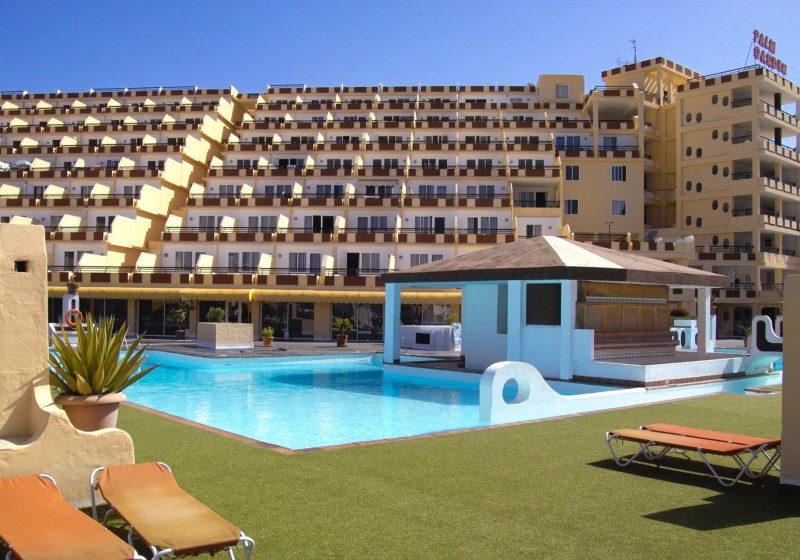 Im Apartamentos Palm Garden by LIVVO wohnt Ihr in einer terrassenförmig angelegten Anlage am Hang, mit freiem Blick zur Meerseite aus allen Wohneinheiten. Das Haus wirkt wie ein aufmerksamer Stützpunkt für entspannte Strandtage und flexible Selbstversorger-Momente. Ihr nehmt das Frühstück und Abendessen am Buffet ein und gestaltet den Rest des Tages nach Eurem Rhythmus – zwischen Pool, kurzer Strandpause und einem Abstecher ins benachbarte Jandia Shopping Center.