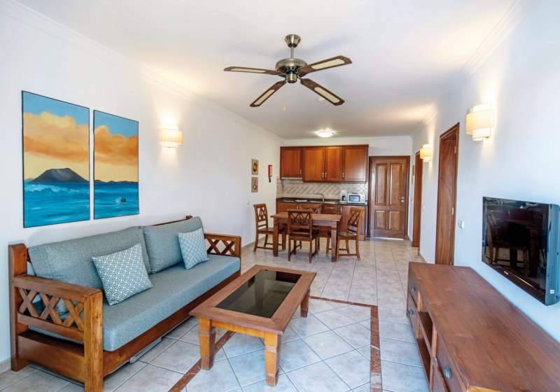 Hotel Las Marismas de Corralejo empfängt Euch als familienfreundliches Apartmenthotel in Corralejo – mit weitem Blick über gepflegte Gartenbereiche, grosszügigen Wasserflächen und entspanntem Rhythmus zwischen Aktivität und Ruhe. Ihr wohnt in funktionalen Appartements mit Wohn-/Schlafraum und separatem Schlafzimmer, richtet Euch dank Kitchenette unabhängig ein und nutzt zugleich die Infrastruktur einer kompletten Ferienanlage. WLAN ist in der gesamten Anlage gratis, sodass Ihr Pläne schmiedet, Erlebnisse teilt oder einfach den nächsten Pooltag festlegt.