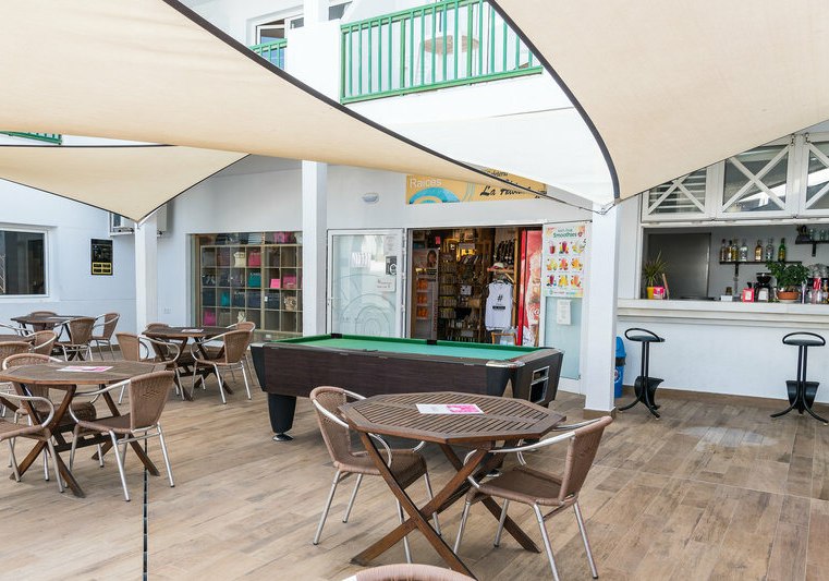 Gemeinschaftsbereiche wie Bar, Café, TV‑Raum und Bibliothek schaffen ruhige Zonen abseits des Pools. Für kleine Erledigungen sind Supermarkt und weitere Einkaufsmöglichkeiten in der Nähe. Wechselstube, Tour‑Desk und Transferservice erleichtern Eure Planung im Urlaub.