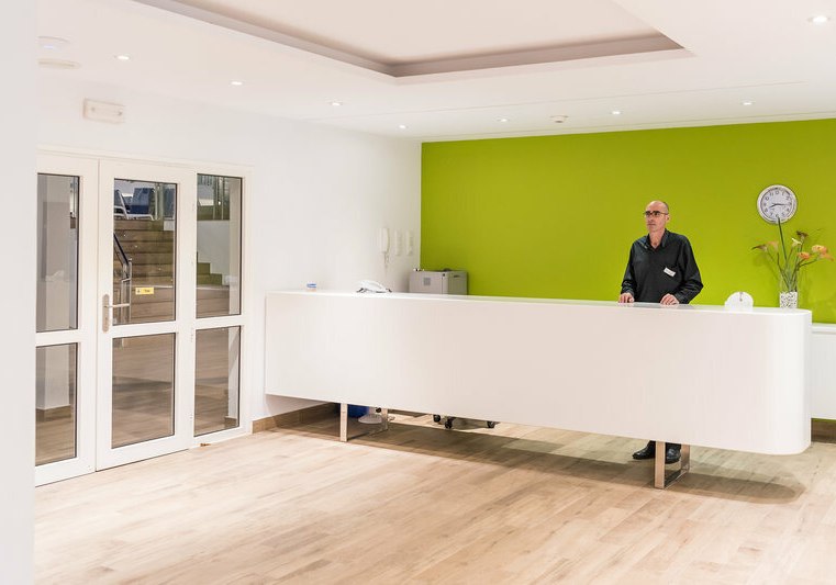Die Infrastruktur ist auf praktischen Komfort ausgelegt: 24‑Stunden‑Rezeption, zwei Lifte, Klimaanlage und kostenloses WLAN bilden die Basis. Ergänzend stehen Sonnenterrasse, Außenpool mit Kinderbecken sowie Serviceangebote wie Wäsche- und Mietwagenservice zur Verfügung. So bleibt Ihr mobil und gut organisiert.