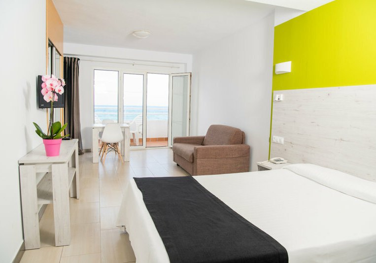 Komfortdetails wie Badewanne, Haartrockner und Schlafsofa runden das Bild ab; Babybetten sind auf Anfrage inklusive. Safe gegen Gebühr, auf Wunsch Meer- oder Poolblick in ausgewählten Einheiten. Das Haus verfügt über 108 Zimmer, mit Studios und Apartments, Baujahr 1992, Renovierung 2010.