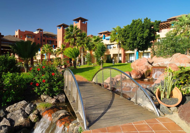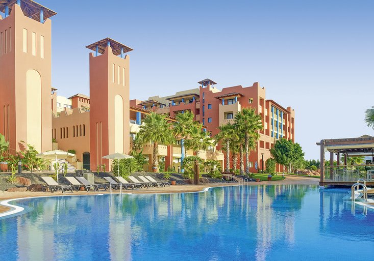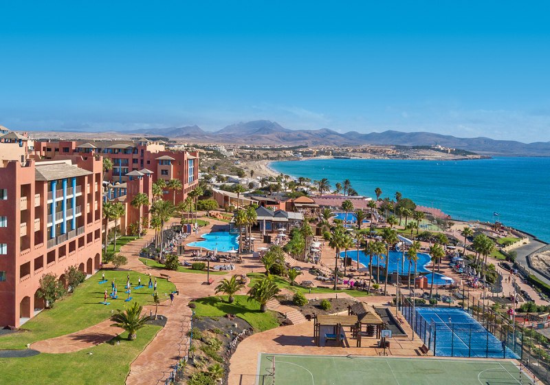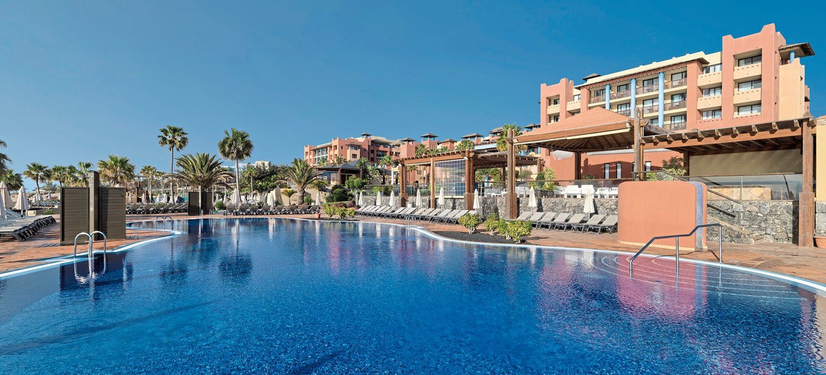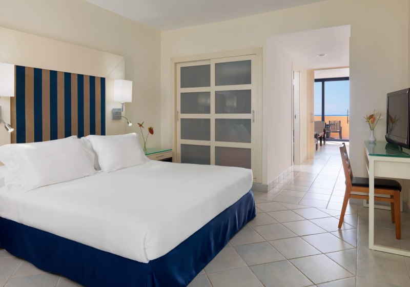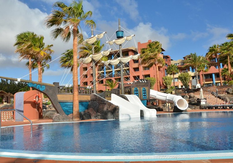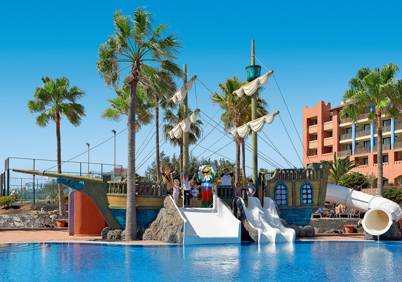 Im H10 Tindaya wohnt Ihr direkt an der Costa Calma – der Strand beginnt vor der Tür. Die Anlage wirkt weitläufig, mit gepflegtem Garten, großzügigen Sonnenterrassen und drei Pools, von denen einer im Winter beheizt wird. Familien finden viel Platz und clevere Ideen: zwei beheizbare Kinderbecken, ein Splash-Park und ein Piratenschiff mit Rutschen setzen klare Akzente für erlebnisreiche Tage am Wasser.