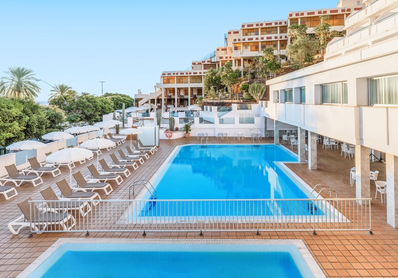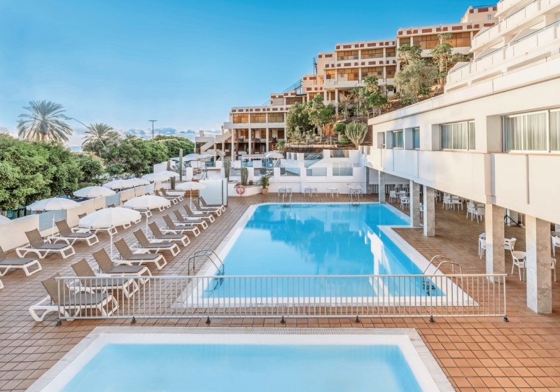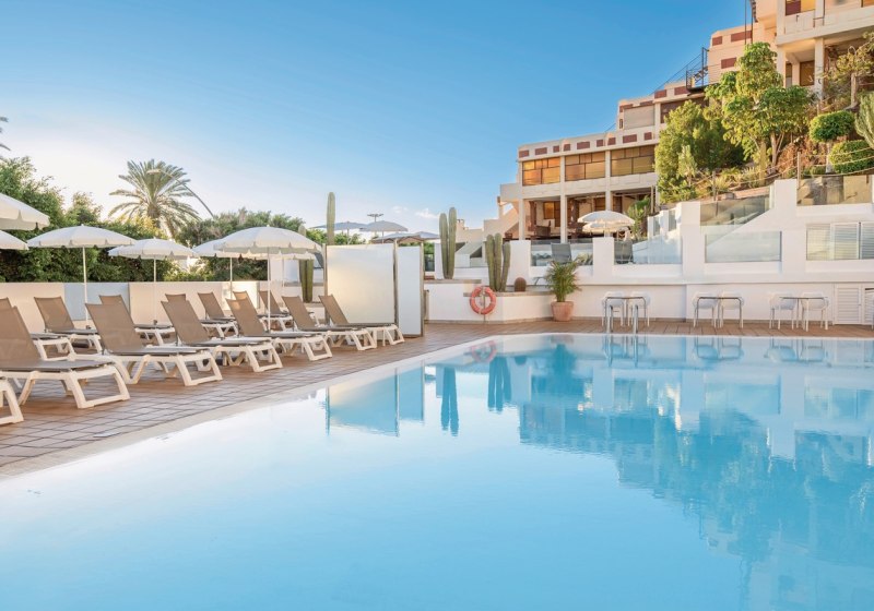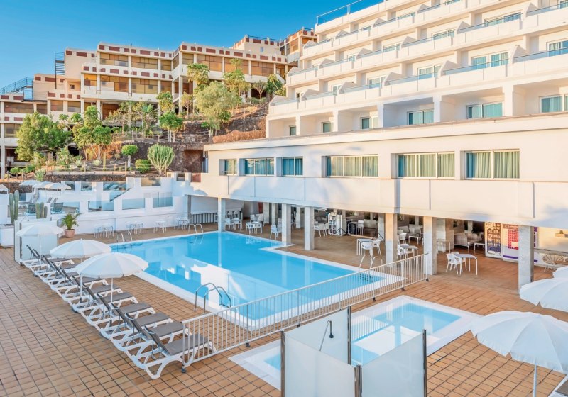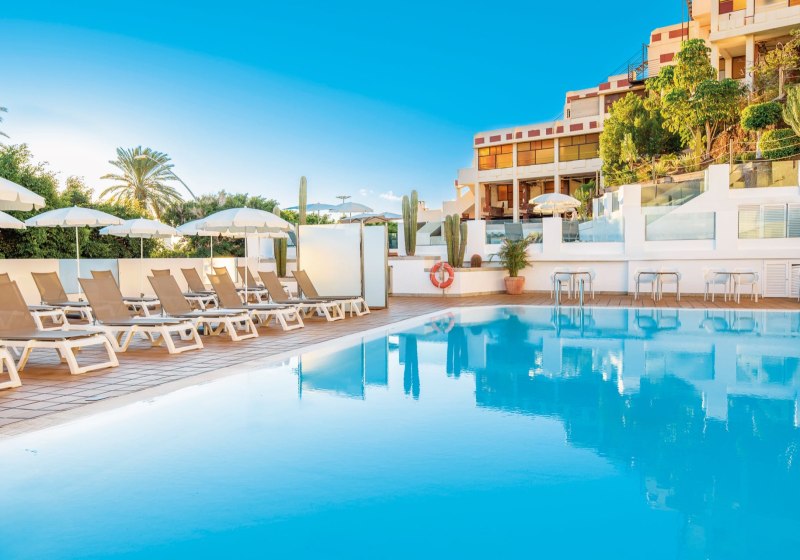 Im Fergus Cactus Garden wohnt Ihr in einem modern geführten 4‑Sterne‑Hotel in Jandia, Fuerteventura. Die Anlage verbindet klare Linien mit angenehmen Rückzugszonen, vom weitläufigen Poolbereich bis zur Dachterrasse mit Whirlpool. Familien, Strandliebhaber und Alleinreisende finden hier strukturierte Angebote, kurze Wege und verlässlichen Komfort. Highlight: Dachterrasse mit Whirlpool und separatem FKK-Bereich, ruhig und diskret gelegen.