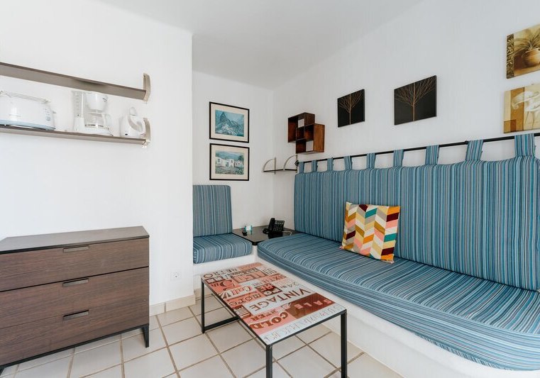 - Solo-Komfort: Studio 10–12 m², seitlicher Meerblick, max. 1 Erwachsener.