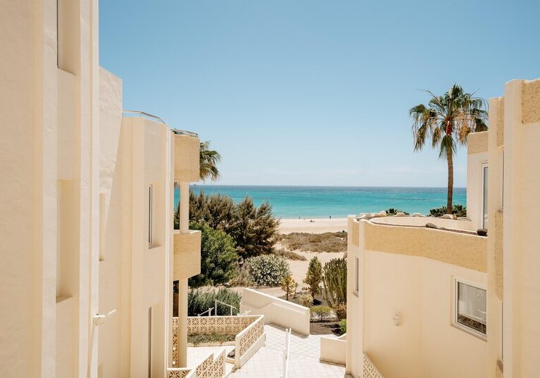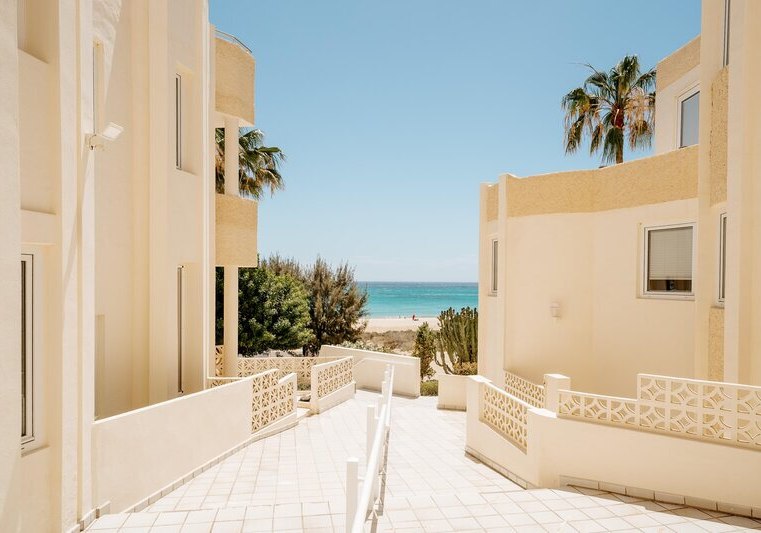 In R2 Maryvent Beach Apartment wohnt Ihr direkt am feinsandigen Strand der Costa Calma – nah am Meer, nah am Leben. Die Anlage wirkt überschaubar und angenehm privat, mit kurzen Wegen und klarer Ausrichtung auf erholsame Strandtage. Statt überladener Infrastruktur steht hier das Apartment als Rückzugsort im Mittelpunkt: ankommen, auspacken, den Sand unter den Füßen spüren und den Tagesrhythmus selbst bestimmen.