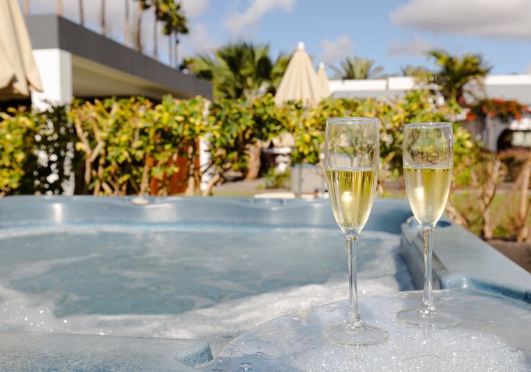 Im R2 Romantic Fantasia Dreams wohnt Ihr in einem Adults-only-Haus ab 16 Jahren, ruhig an der Promenade von Tarajalejo. Die Atmosphäre wirkt fokussiert und entspannt: klare Linien, viel Raum am Pool und mehrere Außenwhirlpools. Ihr nutzt zusätzlich sämtliche Einrichtungen des benachbarten R2 Design Bahia Playa, was Euren Aufenthalt spürbar erweitert. Highlight: Adults-only-Rückzugsort mit Zugang zum Schwesterhotel.