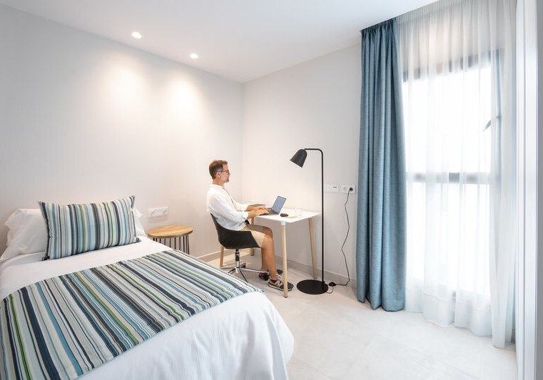 Zwischen Co‑Working‑Zonen und kleinem Konferenzraum fühlt sich die Geschäftsreise ebenso stimmig an wie die Städtereise [[im Urlaub|CH:Städtereise in den Ferien]] mit der Familie – Kinder übernachten kostenlos. Ein Balkon erweitert das private Refugium, die Dusche mit Föhn bringt Klarheit in den Tag. Privatparkplätze in der Tiefgarage (nach Verfügbarkeit) und eine Haustierregelung bis 10 kg machen den Aufenthalt flexibel. Highlight: Stilvolle Apartment‑Basis mit Co‑Working‑Zonen, 300 Meter vom Strand Las Canteras.