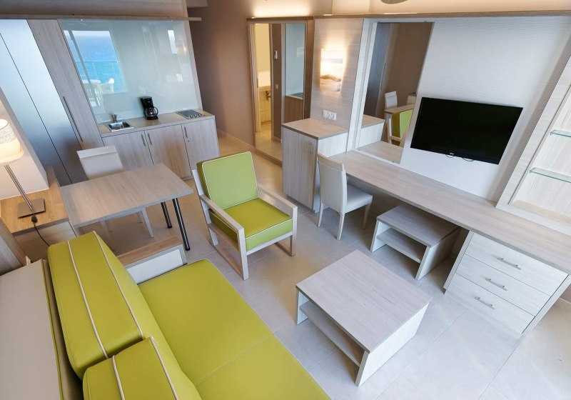 Appartements verfügen über ein separates Schlafzimmer – ideal, wenn Ihr mehr Raum wünscht. Zusätzliche Ausstattungen wie Telefon, WiFi, Haartrockner, Schlafsofa und Fliesenboden unterstützen den Alltag auf Reisen. Rollstuhlgerechte Zimmer sind ausgewiesen. Highlight: Balkone mit Meerbezug setzen den Ton vom ersten Morgen an.