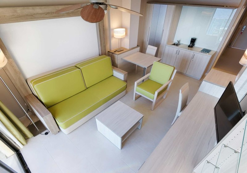 • Familienplus: Schlafsofa und Küchenzeile erleichtern Alltagswege mit Kindern.