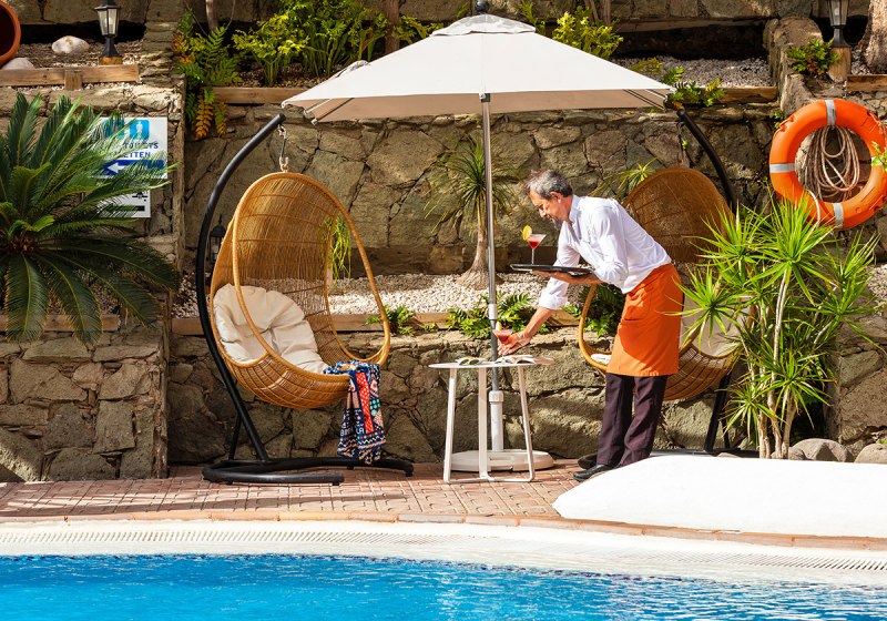 Als Adults-only-Hotel verzichtet Mur Hotel Neptuno bewusst auf Kinderprogramme und richtet das Angebot auf Euch aus. Musik, ein Drink an der Lobby-Bar und Gespräche auf der Poolterrasse prägen die Stimmung. Das passt zur Lage am Yumbo-Center, wo Ihr zusätzliche Abendmöglichkeiten unmittelbar vor der Tür findet.