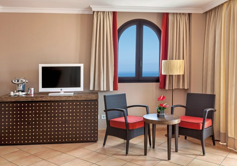• Klimaanlage • Balkon (je nach Zimmerkategorie) • Haartrockner • Sitzecke (je nach Zimmerkategorie) • Mikrowelle • Minikühlschrank • Minibar (gegen Gebühr) • Safe (gegen Gebühr) • Schlafsofa • Kaffee-/Teezubereiter • Terrasse • Fernseher • WiFi (kostenfrei) • Gartenblick • Poolblick • Straßenblick • Kühlschrank • Tageszeitung • Meerblick (je nach Zimmerkategorie)