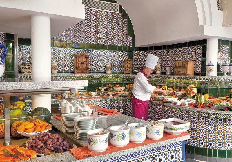 Im Hauptrestaurant mit Außenterrasse esst Ihr in angenehmer, offenen Luft. Kulinarisch reicht das Spektrum von Frühstück über Mittag bis Abendessen, mit Optionen wie Halbpension, All-Inclusive, Snacks sowie alkoholfreien und alkoholischen Getränken inklusive internationaler Marken. Live-Kochen bringt frische Zubereitung direkt an die Stationen.