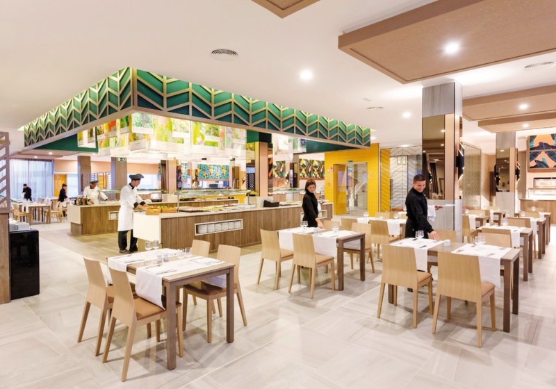Im Hauptrestaurant wählt Ihr am Buffet; Live-Kochen und Snacks ergänzen die Optionen. Abends steht zusätzlich ein À-la-carte-Restaurant mit Reservierung bereit. Mehrere Bars sowie eine Pool-/Snackbar versorgen Euch ganztags mit alkoholfreien und alkoholischen Getränken, je nach gebuchter Verpflegung bis hin zu All-Inclusive.