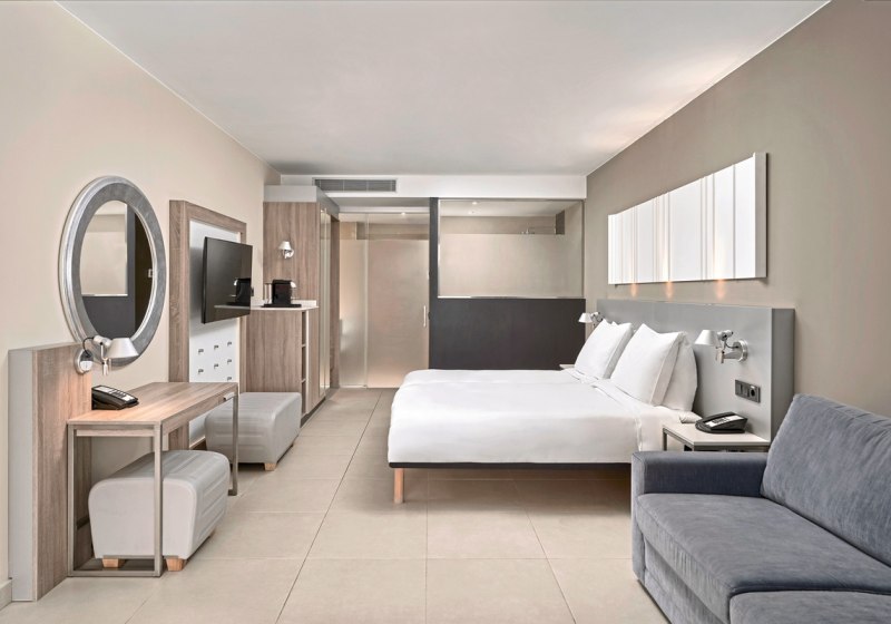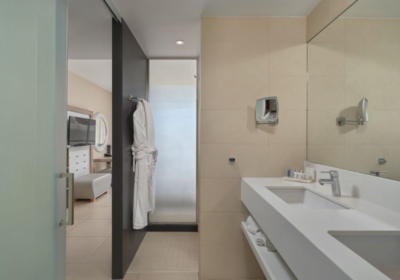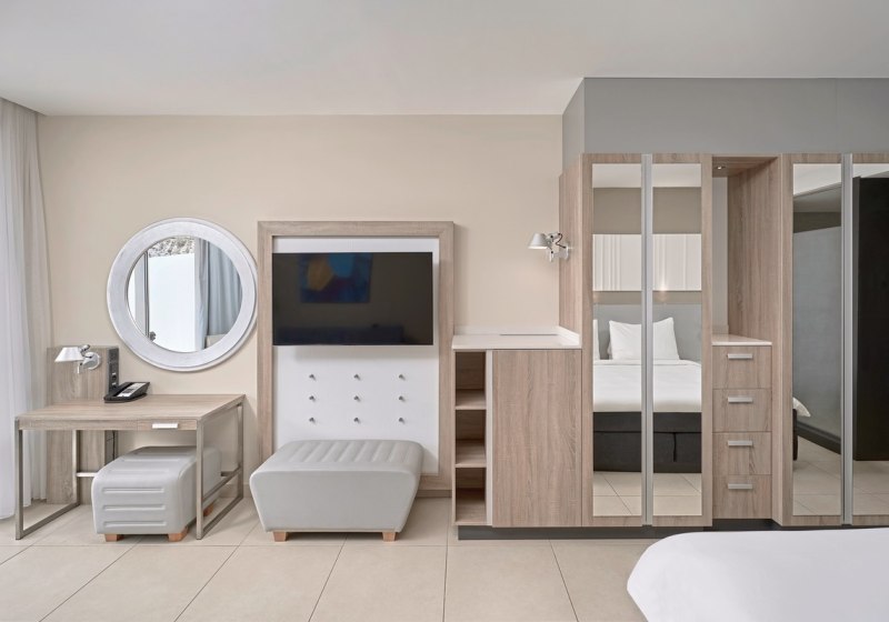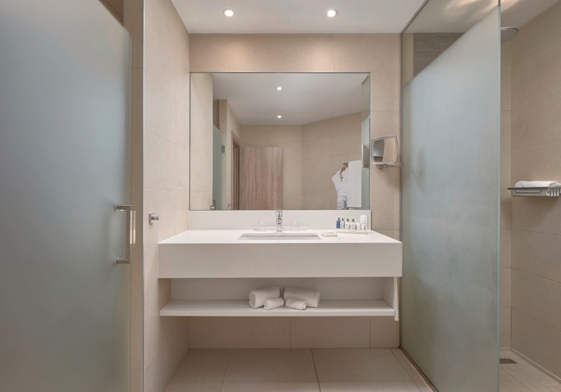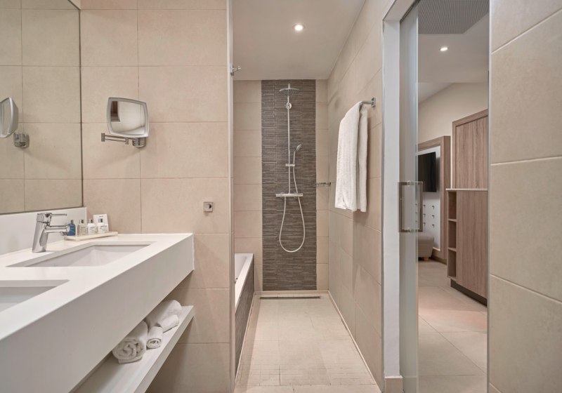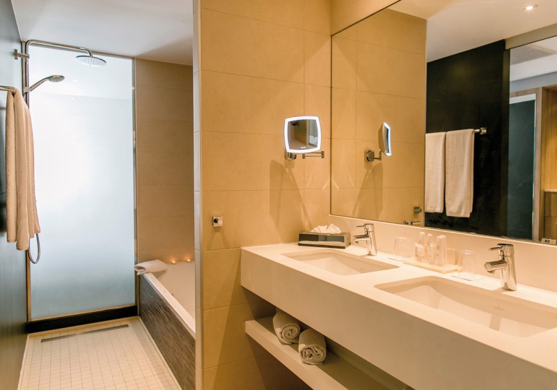 Eure Zimmer sind funktional ausgestattet und klar gestaltet. Klimaanlage, Safe inklusive und Flachbild-Sat-TV gehören zur Grundausstattung. Das Bad bietet Badewanne und separate Dusche, ein separates WC sowie Pflegeextras. Bademantel, Hausschuhe, Föhn und ein Vergrößerungsspiegel runden das Setup ab.