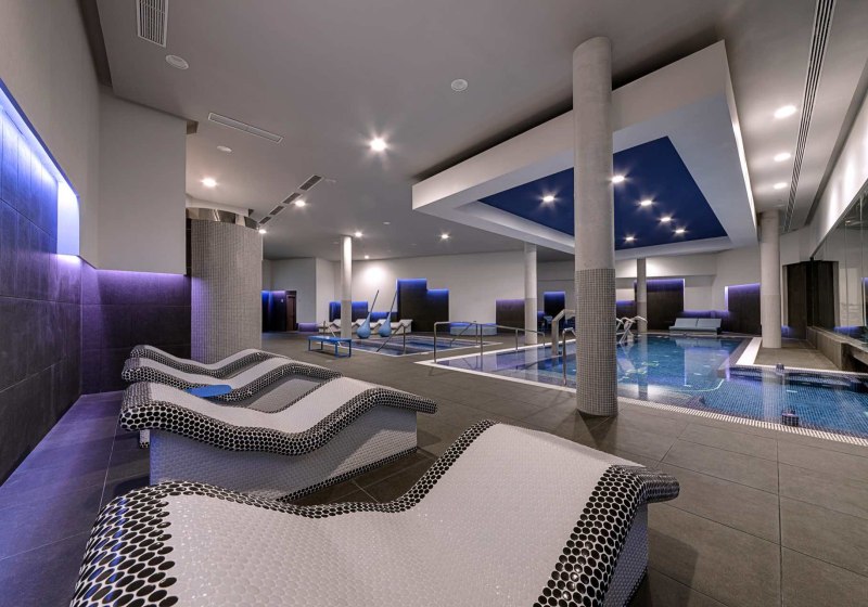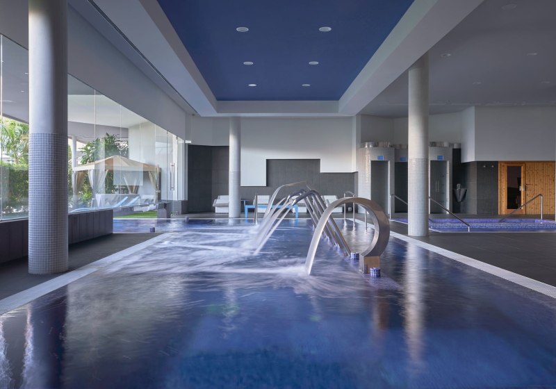 - Spa: Indoor-Pool mit Düsen bildet den ruhigen Mittelpunkt.