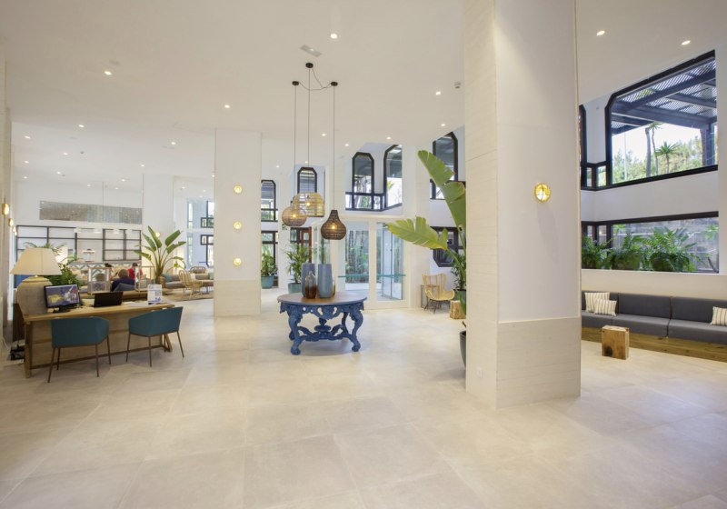 Die öffentlichen Bereiche sind kompakt und funktional: Empfangshalle mit 24-Stunden-Rezeption, Aufzüge, WLAN im gesamten Hotel sowie ein Minimarkt für die kleinen Dinge. Draußen warten zwei Pools, Liegen, Schirme und eine Sonnenterrasse mit Handtuchservice. Highlight: Beheizbarer Pool plus Whirlpool für verlässlichen Komfort.