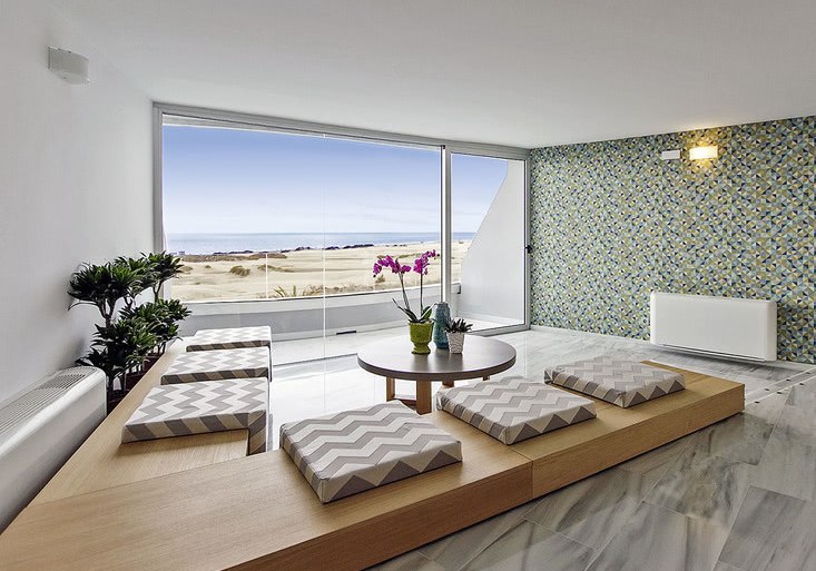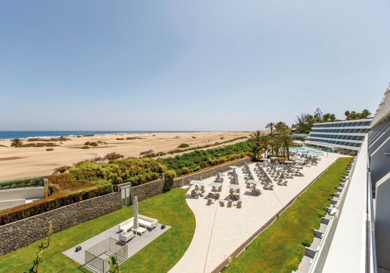 Im Santa Monica Suites wohnt Ihr in großzügigen Juniorsuiten und blickt – je nach Kategorie – auf Garten, Pool oder die Dünen mit Meer dahinter. Die Anlage liegt unterhalb der Strandpromenade von Playa del Inglés, direkt am Naturschutzgebiet der Dünen von Maspalomas. Die Stimmung ist entspannt, der Tagesrhythmus folgt Sonne, Wind und Meer.