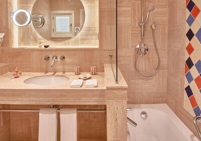 Die Doppelzimmer bieten circa 33 Quadratmeter, Klimaanlage, Safe, Smart-TV und ein Bad mit Dusche oder Badewanne. Ein möblierter Balkon gehört dazu. Superior-Zimmer ergänzen einen Kaffee- und Teezubereiter sowie Garten-, Pool- oder Meerblick. In der Deluxe-Variante steht eine Espressomaschine bereit.