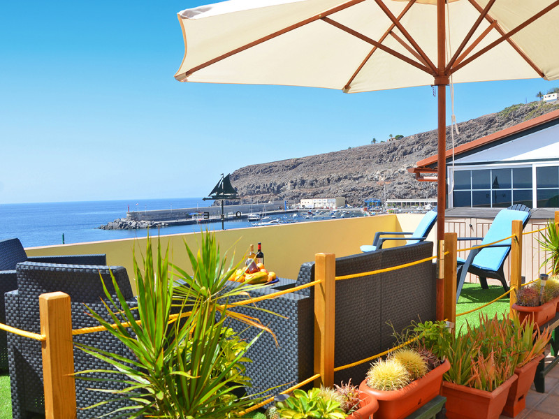 Das Orone liegt in Playa Santiago im Südosten der Insel. Eine Uferstraße trennt Euch vom dunklen Lavastrand aus Kies und Sand. Von hier blickt Ihr auf das Meer und den kleinen Hafen, der die Atmosphäre des Ortes prägt. Die Dachterrasse eröffnet zusätzliche Perspektiven auf die Bucht und das lebendige Wasser vor der Küste.