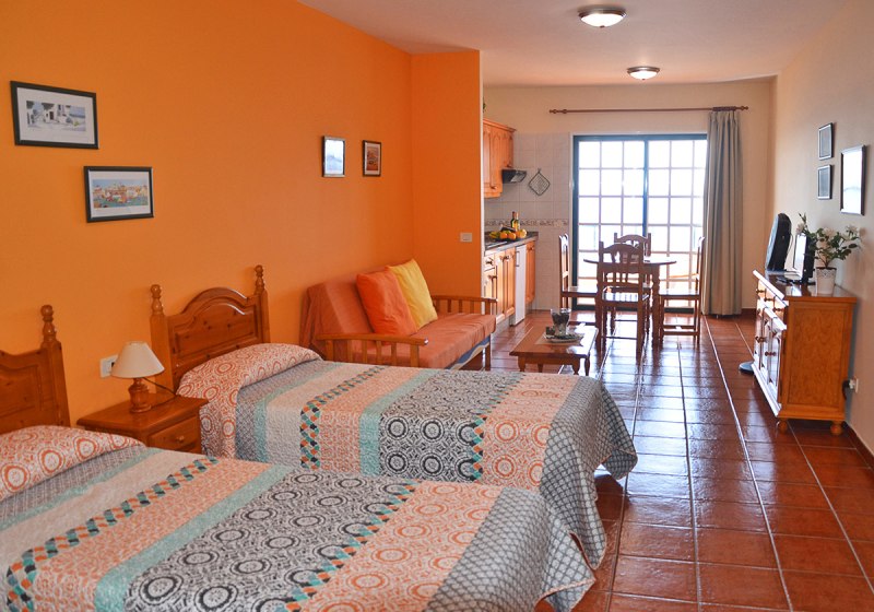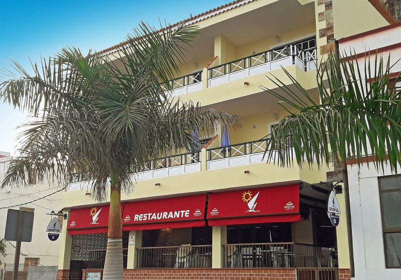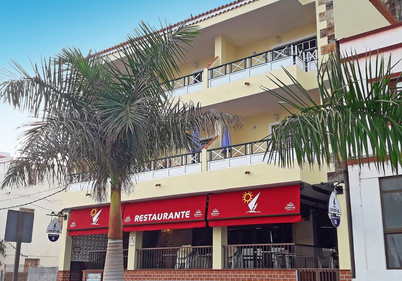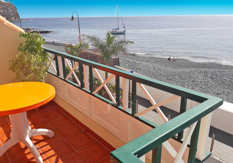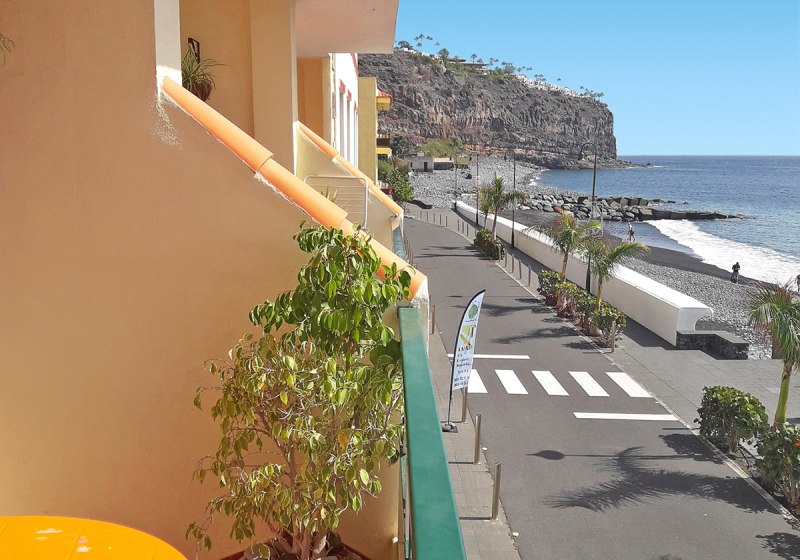 Die Lage am Wasser prägt auch die Außenflächen: Nur die Uferstraße trennt Euch vom Lavastrand. Ein offizielles 2‑Sterne‑Rating unterstreicht den einfachen, zweckmäßigen Charakter des Hauses ohne überflüssige Zusätze.