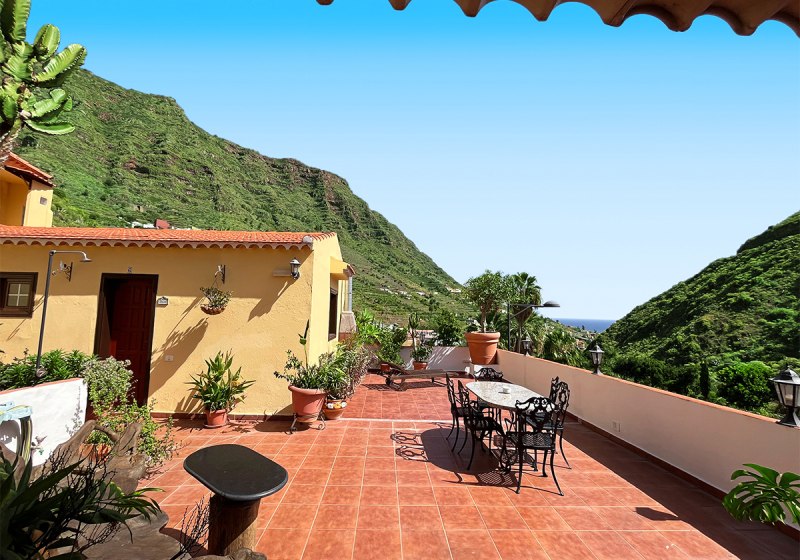 Villa Hermigua empfängt Euch im Ortskern von Hermigua auf La Gomera – in Mauern mit Geschichte. Die ehemalige Dorfschule von 1890 wurde im kanarischen Stil restauriert und bewahrt heute ein bodenständiges, warmes Ambiente. Auf der Sonnenterrasse spürt Ihr die Gelassenheit des Ortes und schaut über die Dächer hinaus bis zum Meer. Der Rahmen ist bewusst reduziert, die Atmosphäre offen und herzlich. Hier zählt der ruhige Rhythmus eines Gomeraner Dorfs, getragen von Licht, Luft und Weite.