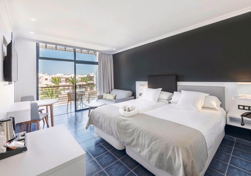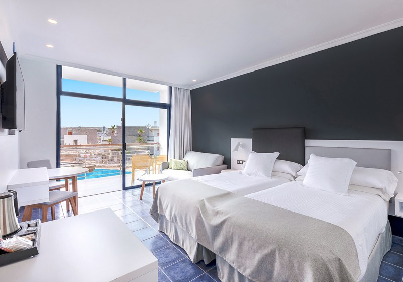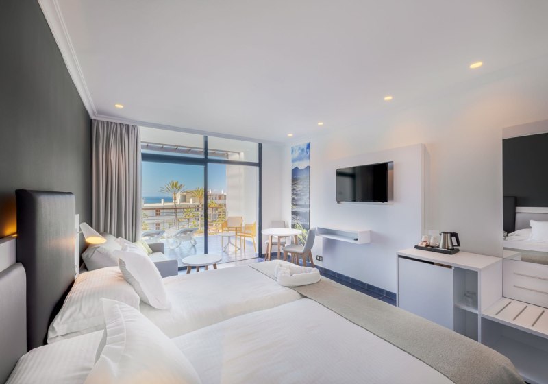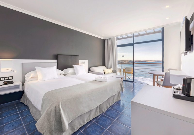 • Klare Basen: Doppelzimmer mit Balkon/Terrasse, Klimaanlage und Minikühlschrank.