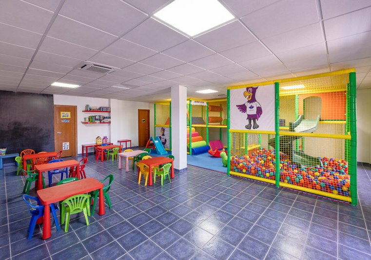 Die Anlage ist übersichtlich organisiert: Empfangshalle, Fahrstuhl und 24-Stunden-Rezeption, dazu kostenfreies WLAN im gesamten Hotel. Außen erwarten Euch zwei Pools, ein Kinderbecken, Liegen und Sonnenschirme sowie eine Poolbar. Die FKK-Dachterrasse ergänzt die Sonnenterrasse um einen geschützten Bereich. Für Familien stehen Spielplatz und Spielzimmer bereit, Badetücher erhaltet Ihr bequem vor Ort.