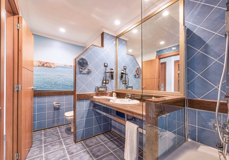 Die Familienzimmer sind mit Kühlschrank, 2-Platten-Herd, Tiefkühler, Mikrowelle und Geschirr ausgestattet; zwei Schlafsofas und zwei TVs schaffen flexible Schlaf- und Rückzugszonen. Badewanne und separate Dusche unterstreichen den praktischen Zuschnitt. Ergänzend stehen je nach Kategorie Annehmlichkeiten wie Schreibtisch, Kaffee-/Teezubereiter, Bügelset oder Haartrockner zur Verfügung. So richtet Ihr Euren Tagesablauf zwischen Meerblick, Balkonmoment und kompaktem Stauraum effizient aus.