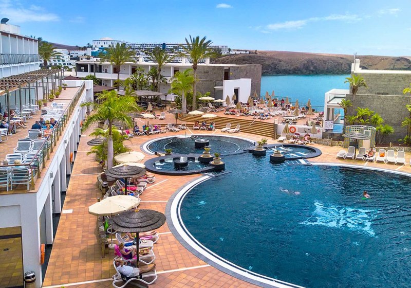 Mirador Papagayo by LIVVO empfängt Euch am Rand von Playa Blanca direkt an der Uferpromenade über der Steinküste. Die Atmosphäre wirkt entspannt und klar strukturiert: großzügige Außenbereiche, zwei Pools und ruhige Ecken wechseln sich mit lebendigen Treffpunkten wie Poolbar und Bar-Salon ab. Familien, Paare und Abenteurer und Aktivurlauber finden hier verlässliche Struktur, abwechslungsreiche Angebote und kurze Wege.