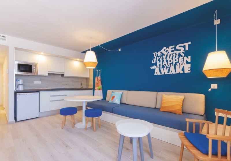 Im R2 Bahía Kontiki Beach Apartments wohnt Ihr in modernen Apartments mit viel Platz für eigene Rituale – ideal, wenn Ihr Freiheit beim Tagesablauf schätzt. Die Anlage mit zwei Etagen wirkt angenehm überschaubar, der Süßwasserpool und die Dachterrasse mit Sonnenliegen bilden das ruhige Zentrum. Nur wenige Schritte trennen Euch vom goldenen Sand der Playa Grande, dazu liegt die Altstadt nah.