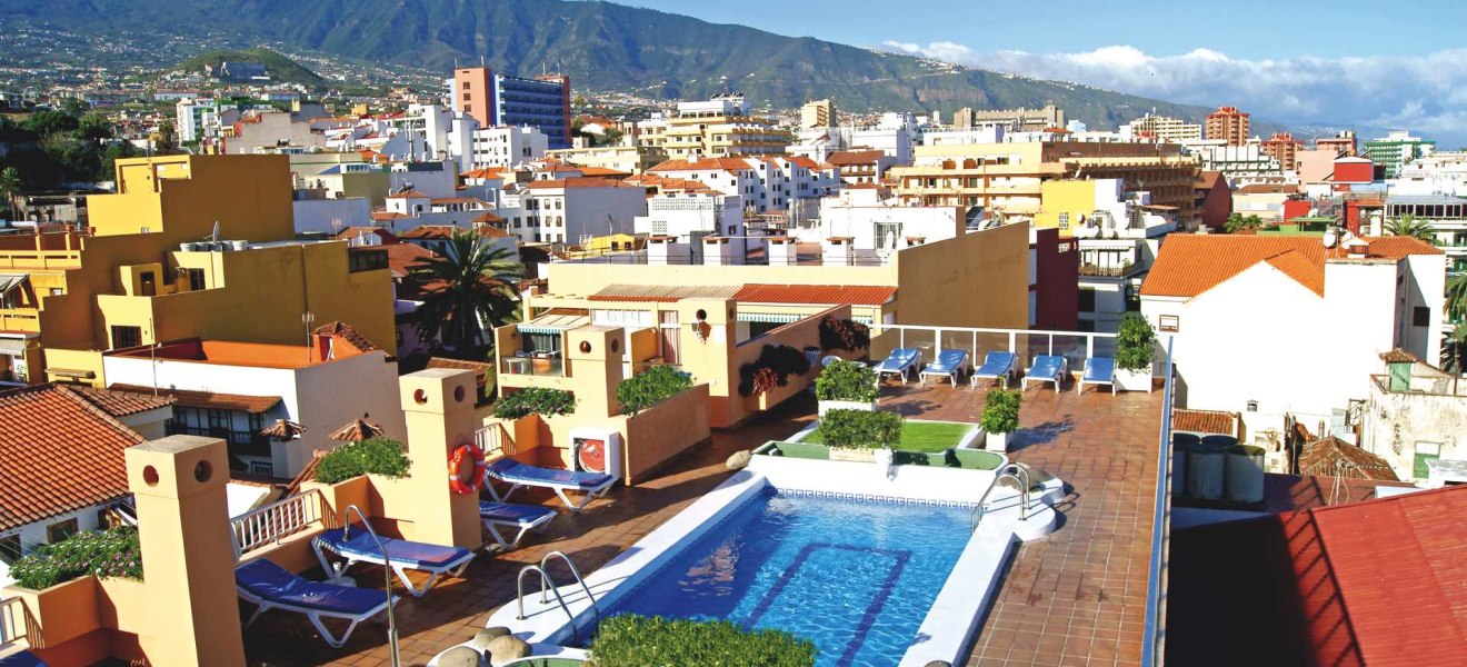Im 4 Dreams Hotel wohnt Ihr mitten in Puerto de la Cruz, direkt an der Fußgängerzone der Altstadt. Das Haus setzt auf klare Linien, kurze Wege und eine entspannte Stadthotel-Atmosphäre. Auf der Dachetage erwartet Euch der Außenpool mit Sonnenterrasse – ideal, um zwischen Stadtbummel und Hafenflair in Ruhe abzuschalten.