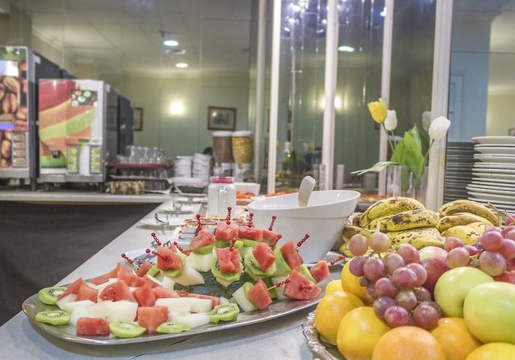 Ihr startet im Frühstücksraum mit einem kontinentalen Buffet in den Tag. Brot, Aufstriche, einfache Auswahl – passend für frühe Ausflüge zur Plaza Charco oder zum Hafen gleich nebenan. Die Atmosphäre bleibt unkompliziert, der Ablauf zügig, die Wege kurz.