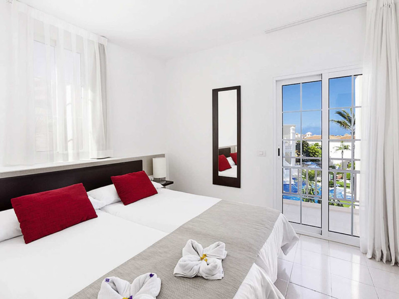 Im Adonis Bahía Fañabé Villas wohnt Ihr in einer überschaubaren Anlage mit 96 Wohneinheiten auf zwei Etagen – angenehm persönlich, mit klarer Struktur. Die Gartenwege führen zu Sonnenterrassen und dem Außenpool, während der Empfangsbereich mit Sitzgruppen und 24‑Stunden‑Rezeption als ruhiger Treffpunkt dient. WLAN in den Gemeinschaftsbereichen hält Euch vernetzt.