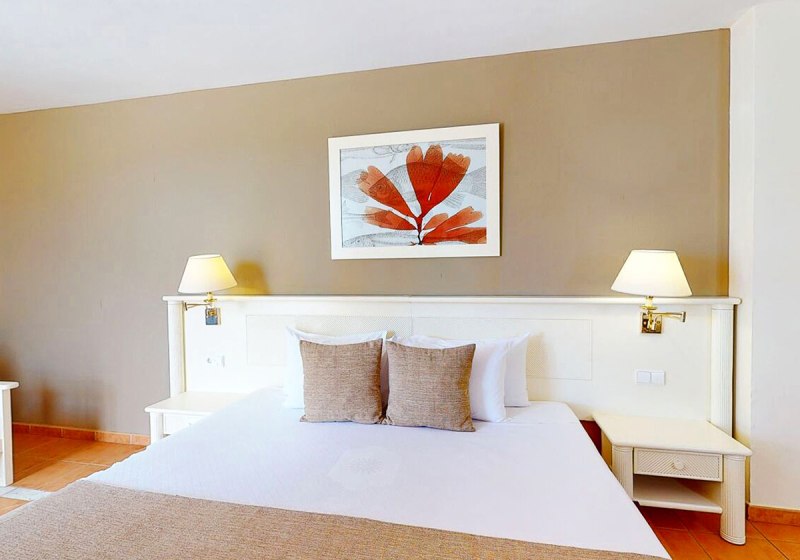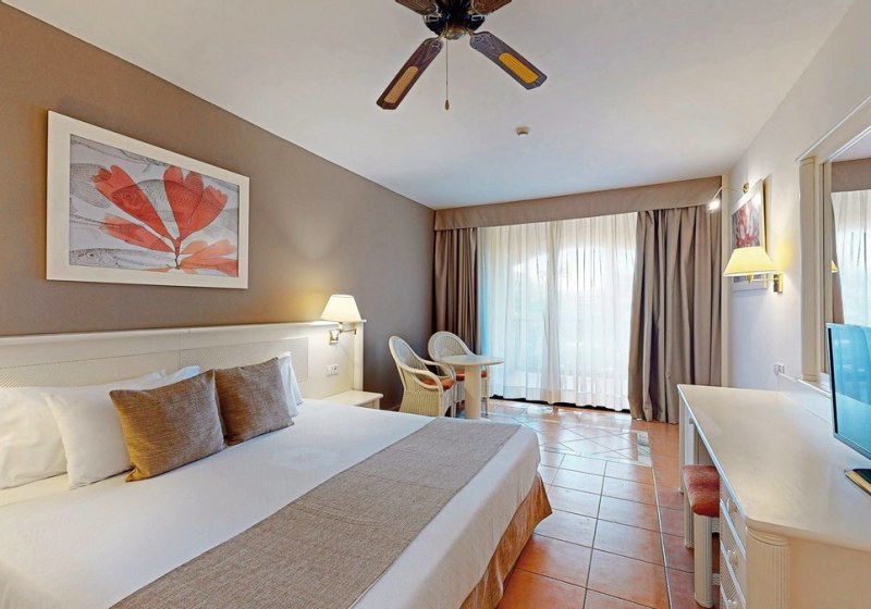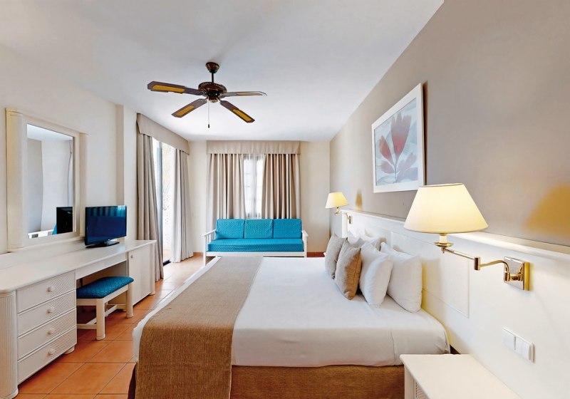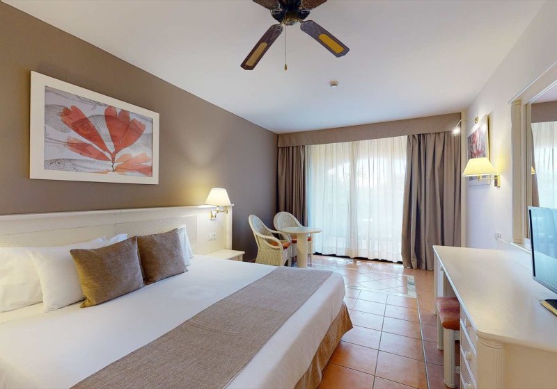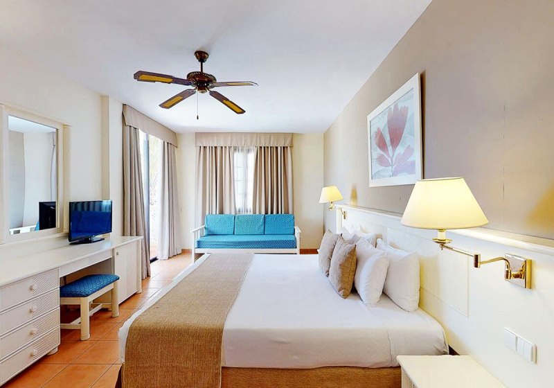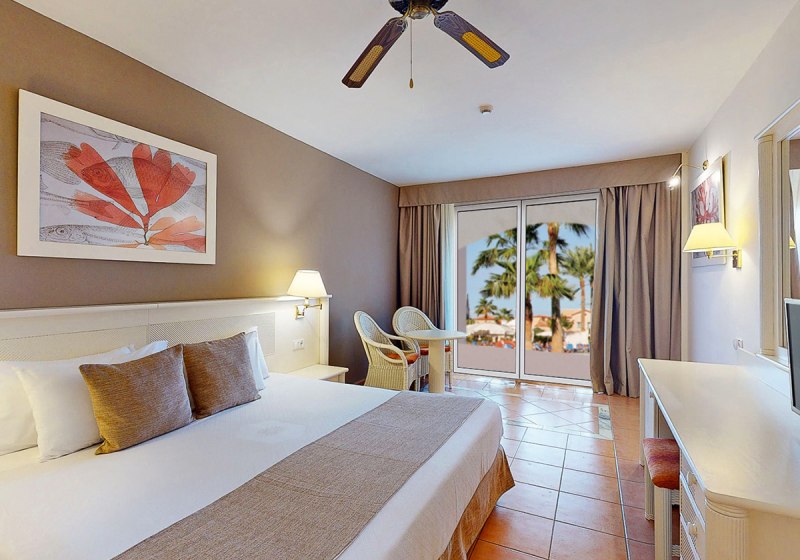 505 Zimmer verteilen sich auf ein Hauptgebäude mit fünf Etagen. Die Doppelzimmer (ca. 30–35 m²) sind mit Klimaanlage und Deckenventilator ausgestattet; Bad mit Badewanne, Doppelwaschbecken und Föhn. Dazu Sat-TV, Direktwahl-Telefon, Safe, Minibar und WLAN. Balkon oder Terrasse öffnet den Blick ins Freie, Meerblick ist verfügbar.