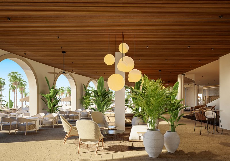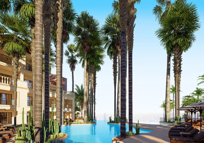 Die Poollandschaft bildet das Herz der Anlage: Lagunenstruktur, grosser im Winter beheizbarer Pool, separater Kinderbereich und der markante Infinitypool über den Klippen. Rundum erwarten Euch Sonnenterrassen mit Liegen und Schirmen sowie Pooltücher. Das Raumgefühl ist offen, mit klaren Wegen zwischen Wasser, Bars und Restaurants.