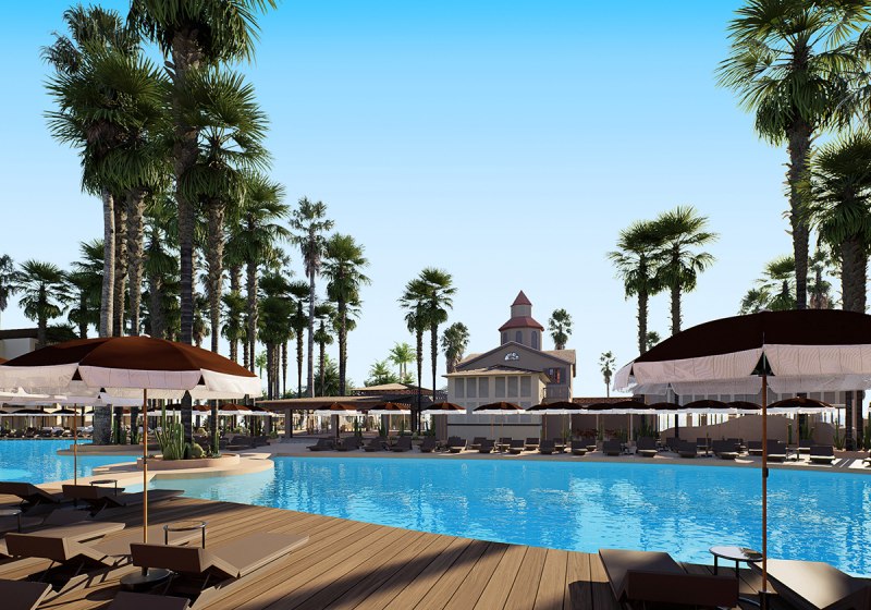 - Weitläufige Pools: Lagunenlandschaft, beheizbarer Hauptpool, Kinderbecken und Infinitypool.