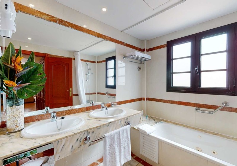 - Kernkomfort: Klimaanlage, Badwanne, Doppelwaschbecken, Sat-TV, Safe und WLAN.