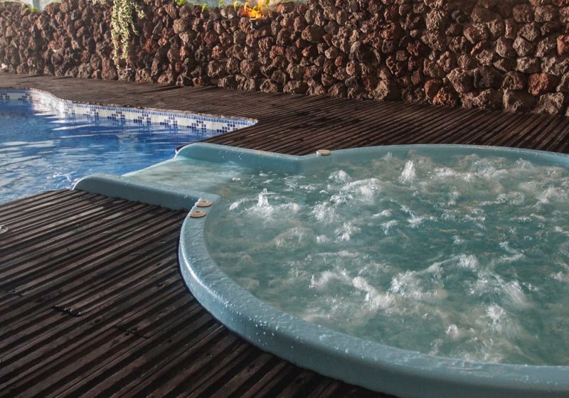 - Wärme im Wasser: Beheizter Pool und Whirlpool verlängern die Badezeit ganzjährig.