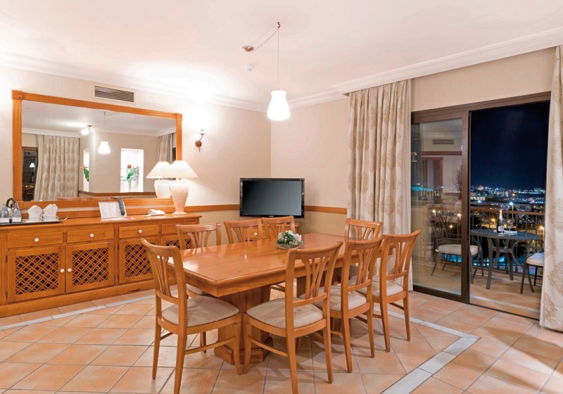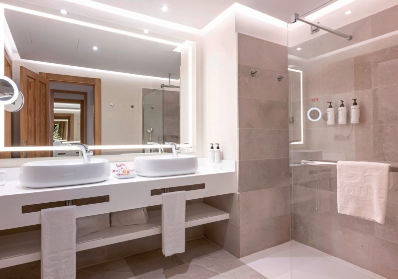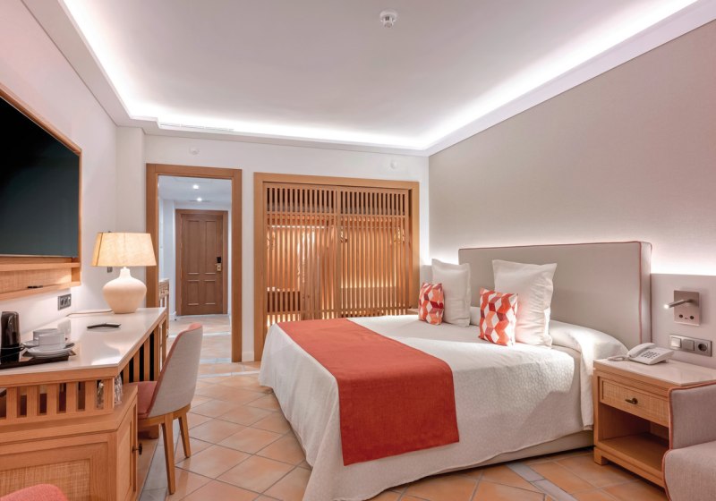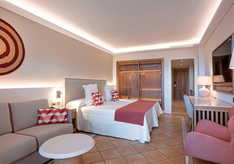 Das Ambiente wirkt großzügig und geordnet: klare Wege, gepflegte Terrassen, viel Platz für Rückzug und Austausch. Sportliche Momente setzt Ihr im Fitnessraum, bei Basketball, Squash oder Fußball. Für Meetings und Events stehen neun Konferenzräume samt Kongressbetreuung bereit. Kulinarisch wählt Ihr zwischen Buffet im La Finca und À-la-carte im La Laja, begleitet von Bars vom Pool bis zur Lobby. Check-in ab 14 Uhr, Check-out bis 12 Uhr. Highlight: Dachpool und FKK-Terrasse schaffen klare Zonen für unterschiedliche Wünsche.