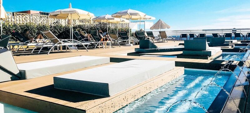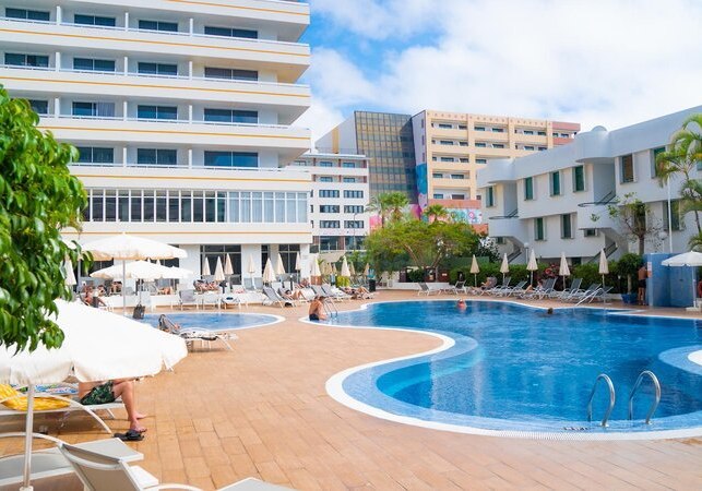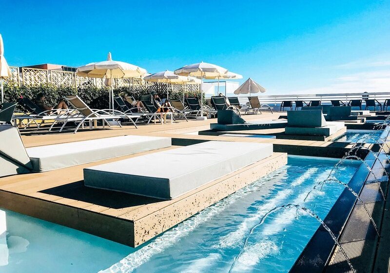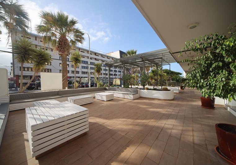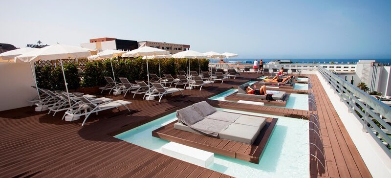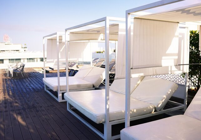 Der Außenpool mit Poolbar, Sonnenliegen und Schirmen bildet den Mittelpunkt unter freiem Himmel. Terrassen und eine Dachterrasse fangen Licht und Blickachsen ein. Praktisch: Geldautomat, Getränkeautomat, Mietwagen- und Fahrradverleih, medizinische Betreuung sowie 24-Stunden-Sicherheitsdienst. So bleibt Euer Tag vom frühen Check-in bis zum späten Rückkehrmoment angenehm planbar.