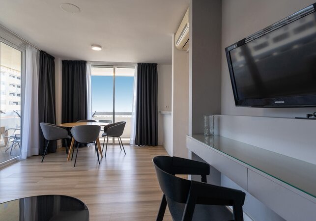 Ihr wohnt in einem modernen Apartmenthotel mit 257 Einheiten, das Euch dank Kochnische, Balkon oder Terrasse und verlässlichem WLAN viel Freiheit lässt. Wer aktiv sein möchte, findet ein Fitnessstudio und ein Kursprogramm von Yoga bis Pilates. Kulinarisch bleibt Ihr flexibel: vom Frühstück bis All-Inclusive, dazu Live-Kochen und vegetarische oder vegane Angebote. Für berufliche Termine stehen vier Konferenzräume bereit, für den unbeschwerten Tag sorgen Concierge, Mietwagen- und Fahrradverleih.