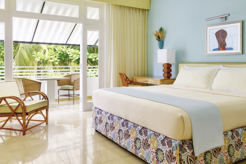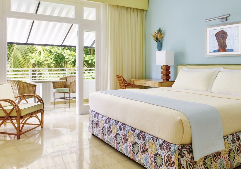 Die Zimmer sind klimatisiert und mit Ventilator, TV, WLAN sowie Safe ausgestattet. Ein modernes Duschbad mit Föhn und Bademänteln gehört zum Standard. Fast alle Einheiten öffnen sich zu Balkon oder Terrasse. Die meisten bieten zwei Queensize-Betten mit etwa 1,40 x 2 Metern Liegefläche.